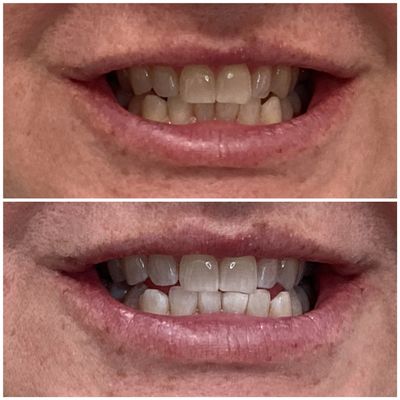 How many shades will I whiten? Before the whitening there is no way to tell. The average is 2-8 shades depending on where you start on the shade guide. For instance, if you start on the 4th whitest shade, you obviously can’t whiten 8 shades. On the other hand, if you start at the 2nd darkest shade, you could potentially go more than 8 shades. The average is 2-8.